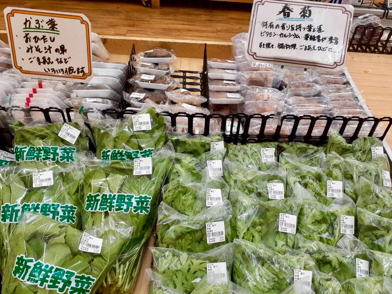 かぶ菜や春菊、キャベツがたくさん入荷中❗️連休は大荒れの天気模様なので、お買い物はお早めにどうぞ。