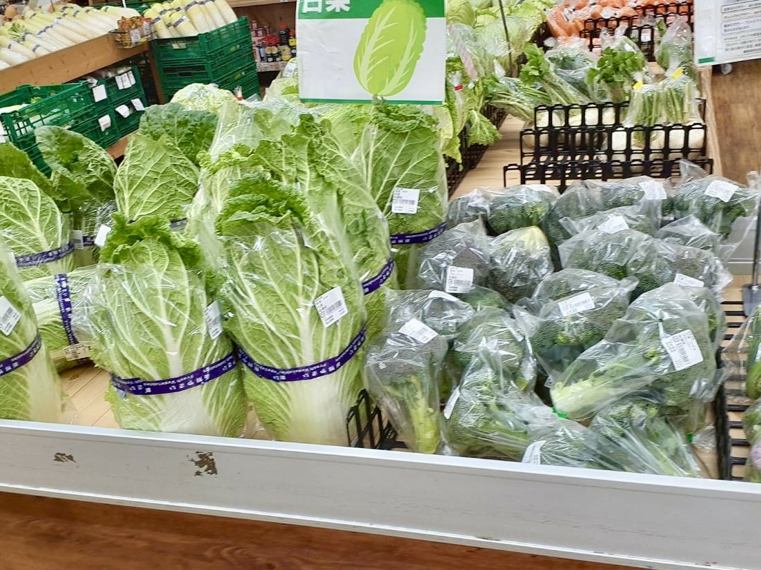 白菜に春菊ほうれん草が出荷中❗️正月飾り用の販売もございます。足元に気をつけてお越しください。